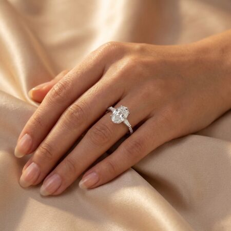 2.52 Carat Oval Cut Lab Grown Diamond & Three side Diamonds band Engagement Ring 14K Gold E/VVS1 IGI Certified