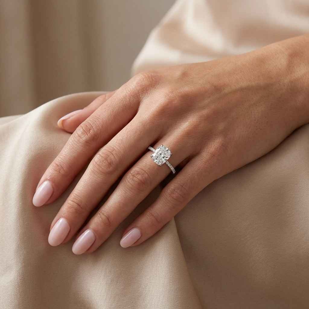 This 2ct cushion cut diamond ring ships duty-free to the USA, UK, and Canada, with flexible payment options available through Klarna & Affirm. Elevate your love story with this breathtaking diamond engagement ring today!