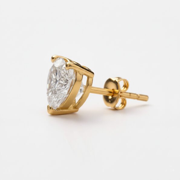 Make a statement with these 2CTW diamond stud earrings, featuring certified Heart cut F/VS1 lab-grown diamonds set in 14K gold. These solitaire earrings are designed for those who appreciate timeless elegance and ethical luxury. The 3-prong stud screw-back setting ensures a secure and comfortable fit, making them ideal for daily wear or special occasions.