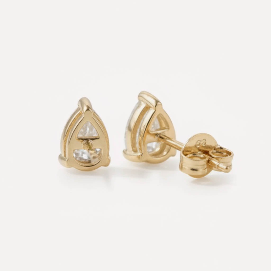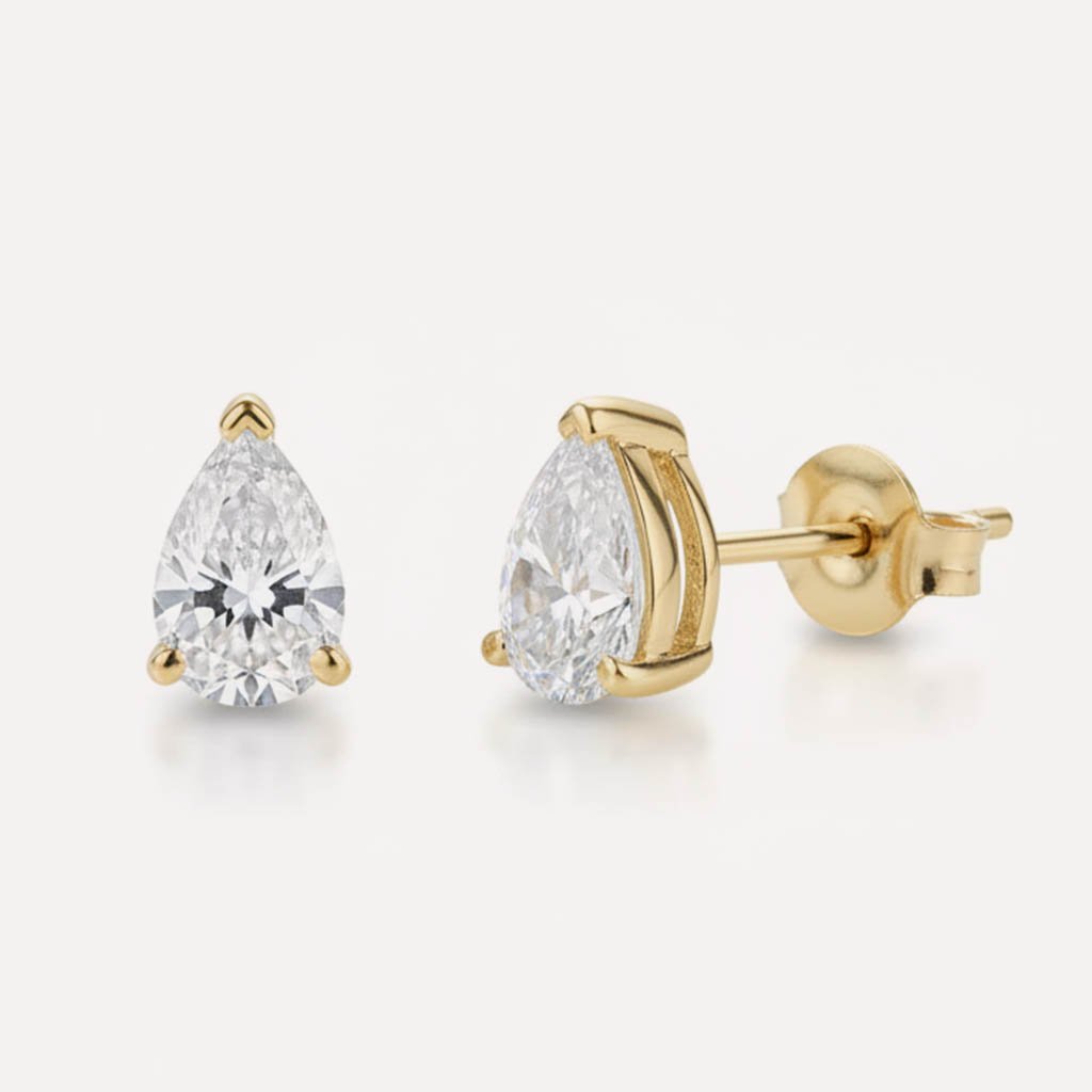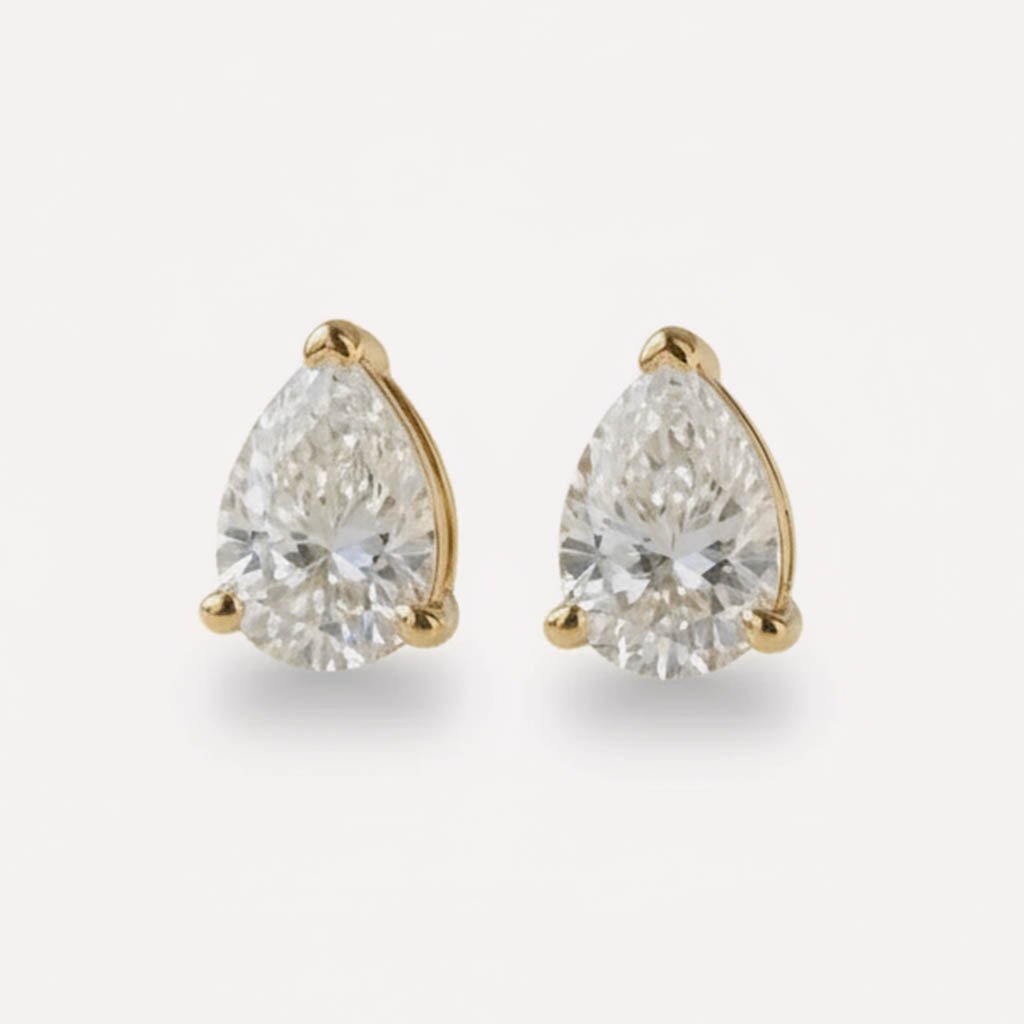 Every pair of these diamond stud earrings is handcrafted with precision to ensure the finest quality. Whether you’re searching for the ideal anniversary gift, sophisticated gold earrings, or an eco-friendly alternative with lab-grown diamond earrings, these stunning pear-cut studs are the perfect choice.