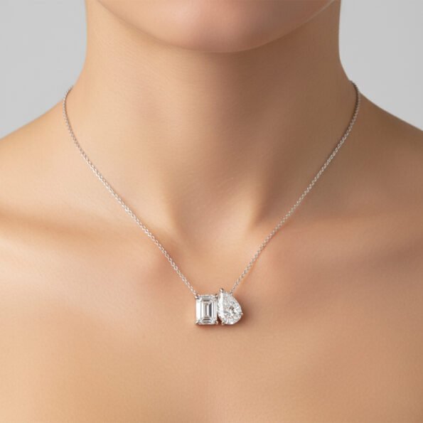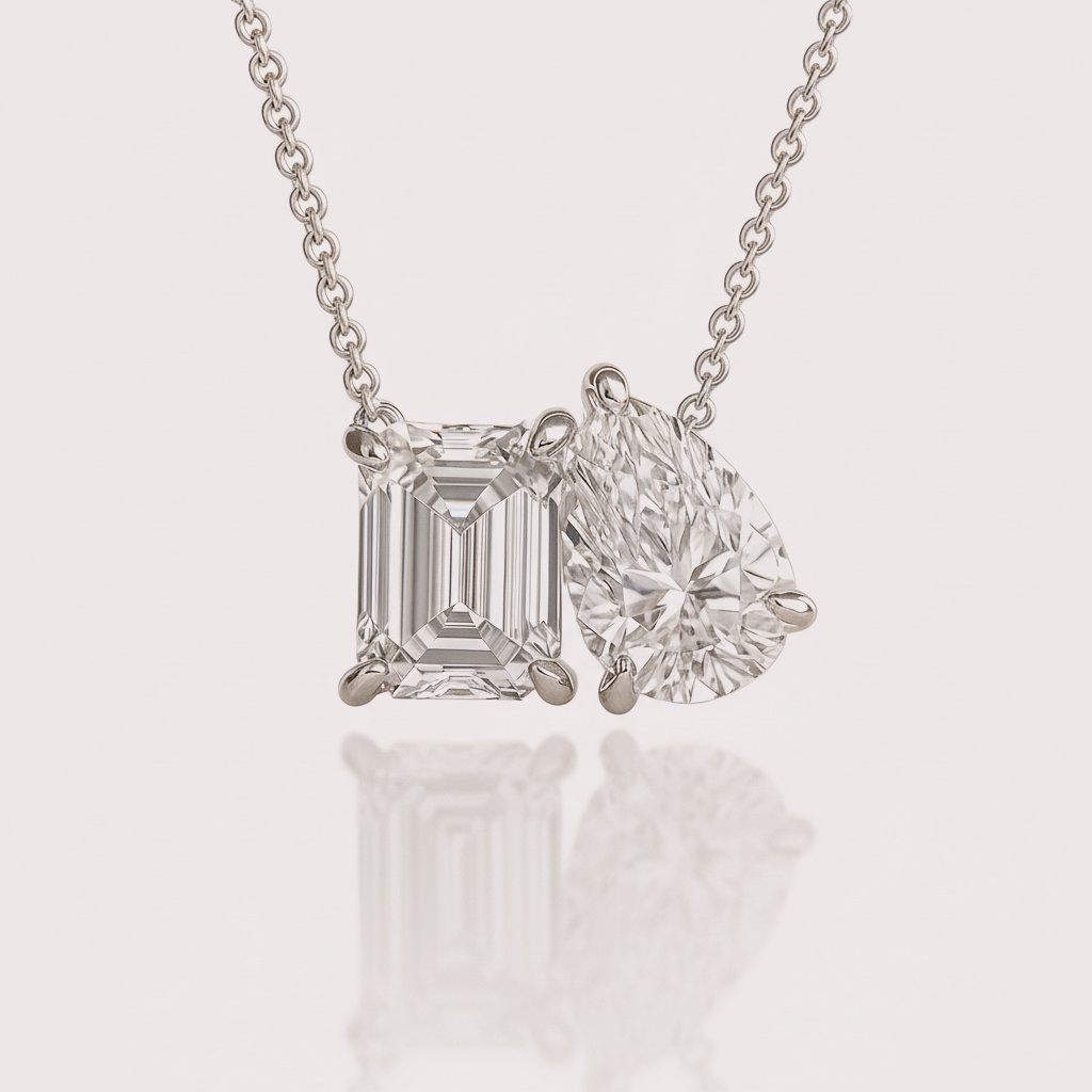 Celebrate elegance and timeless beauty with our 2CTW Toi Et Moi Necklace, a stunning gold pendant necklace featuring certified lab-grown diamonds in Pear and Emerald cuts. Crafted in 18K white gold, this women’s necklace is the perfect anniversary gift, symbolizing love and connection. Whether you’re searching for a first wedding anniversary gift or a thoughtful anniversary gift for your wife, this exquisite piece makes a meaningful statement.
