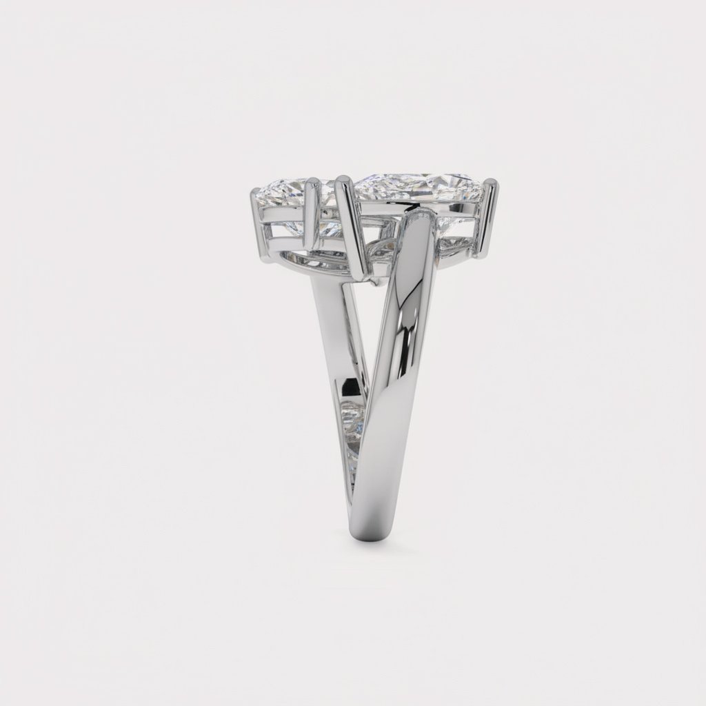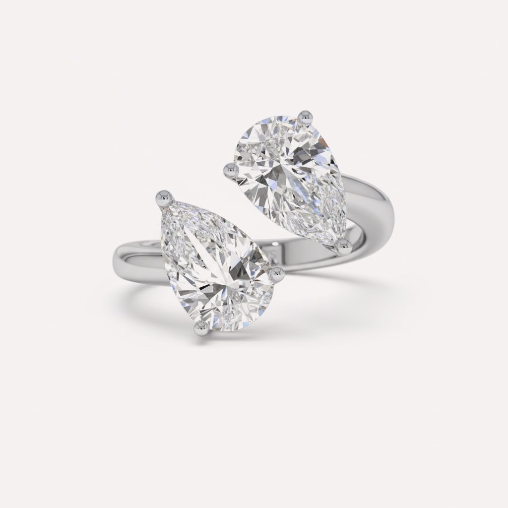 3.03 ctw Pear Lab Diamond Toi et Moi Ring | Two Stone Bypass Ring | Solid Gold