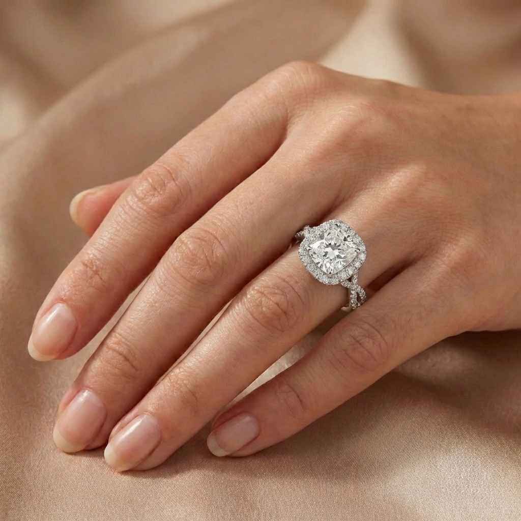 3.50ct Cushion Cut IGI Certified Lab Diamond Halo Ring in 14K Gold – Infinity Twist Pavé Shank