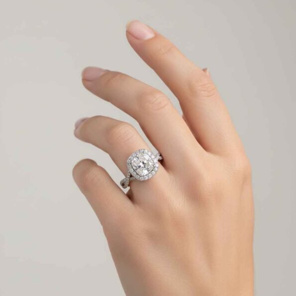 3.50ct Cushion Cut IGI Certified Lab Diamond Halo Ring in 18K Gold – Infinity Twist Pavé Shank