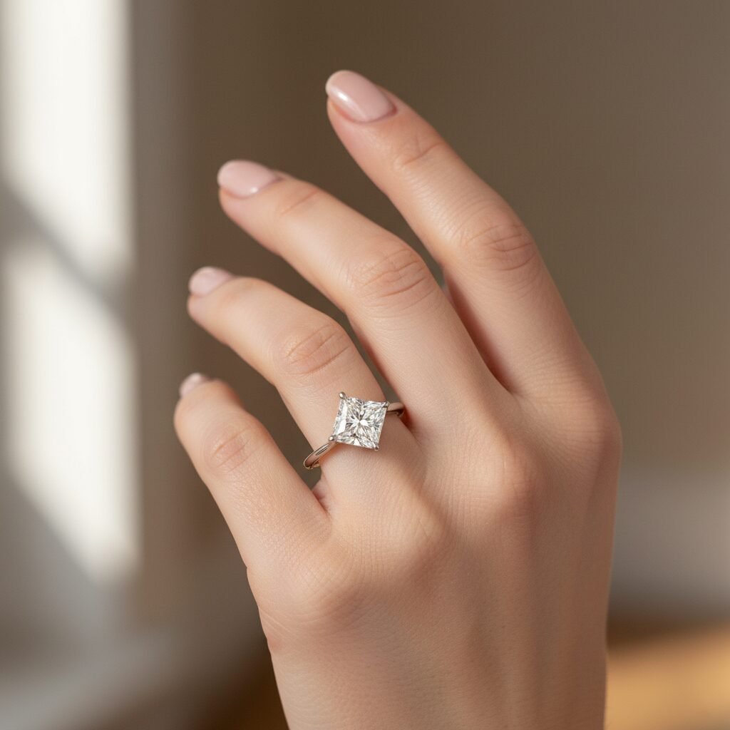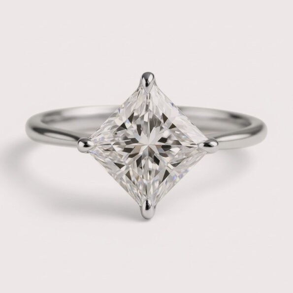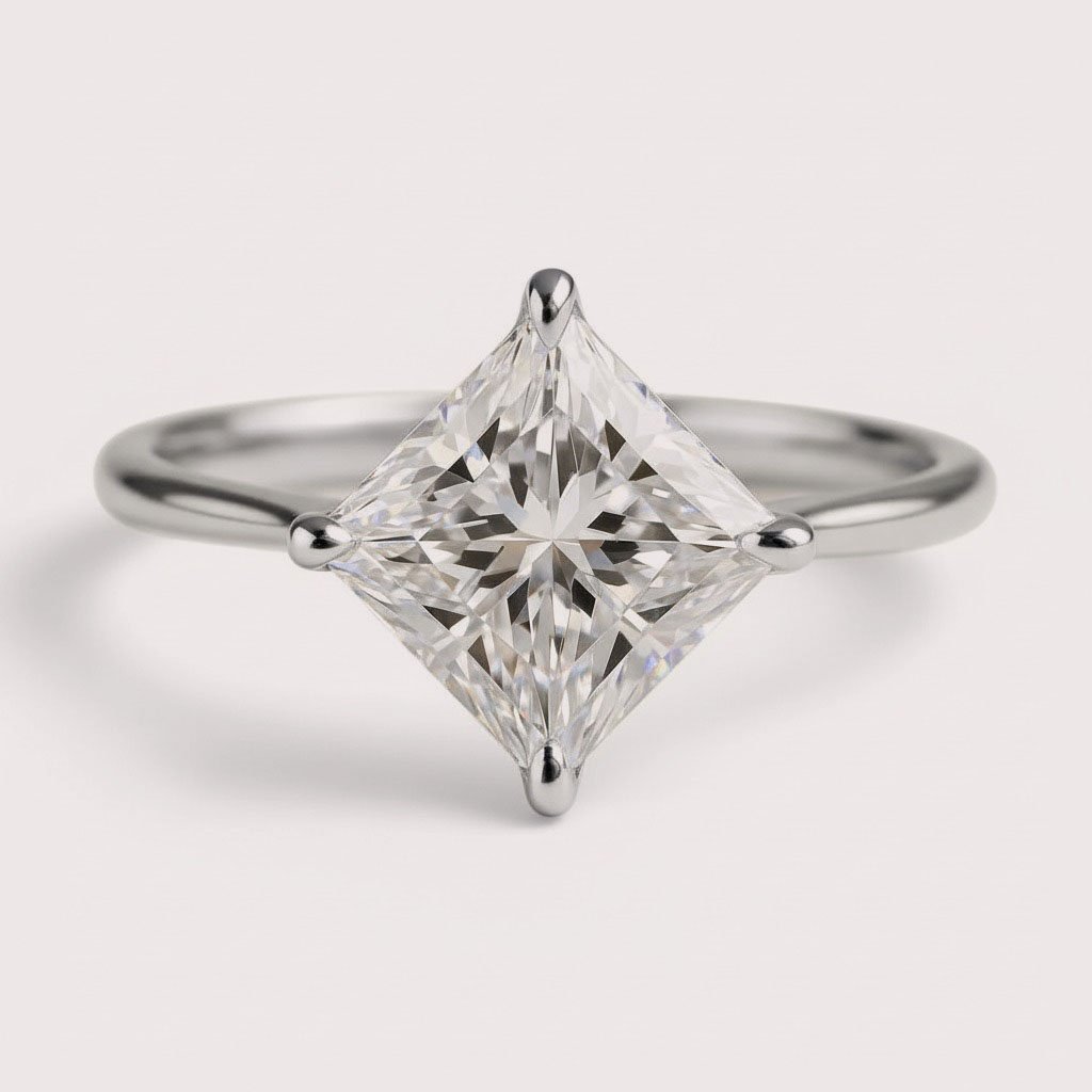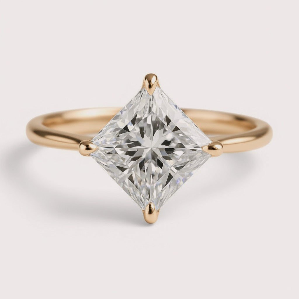 3.50ct Princess Cut IGI Certified CVD Lab Diamond Solitaire Ring in 18K Gold – Modern Minimalist Setting