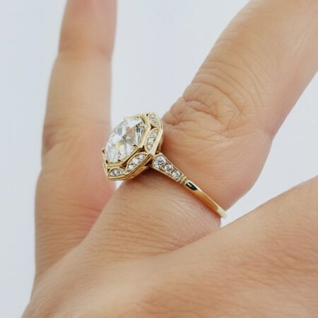 A high-carat cushion solitaire engagement ring designed for lasting brilliance and timeless sophistication.
