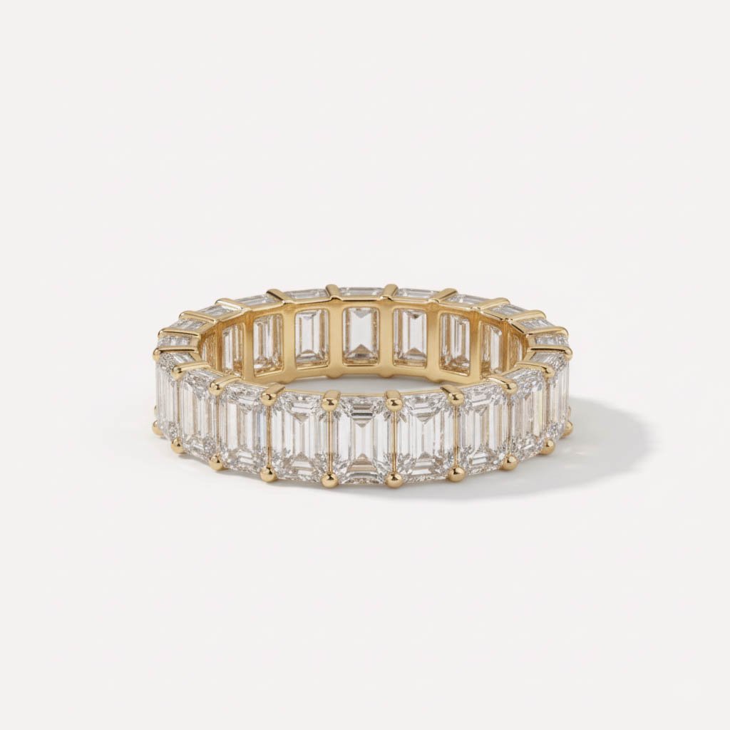 Add timeless elegance to your collection with this emerald cut lab-grown diamond eternity band, featuring diamonds of approximately 0.30 carats each, totaling 4.50 to 7 carats. Expertly set in 10K gold—choose from white, yellow, or rose—this ring exudes classic sophistication with modern brilliance.