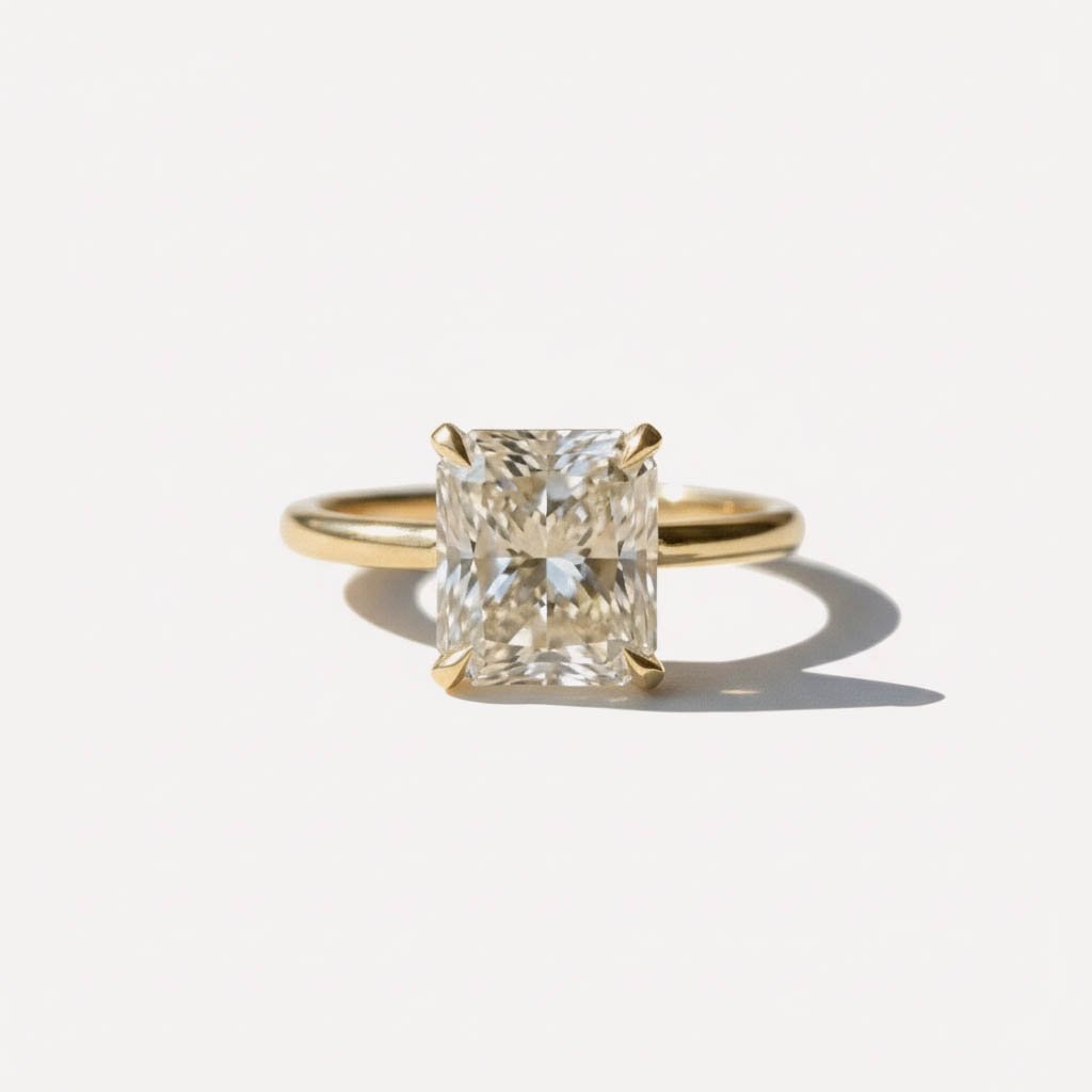 Make a bold, timeless statement with this 5.18 ct Radiant Cut Moissanite Solitaire Ring, crafted to showcase maximum brilliance with clean modern lines. The elongated radiant cut combines the fire of a brilliant cut with the elegance of step facets, creating a high-impact center stone that sparkles from every angle.