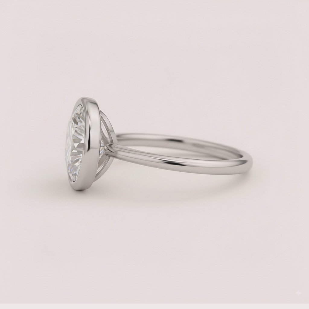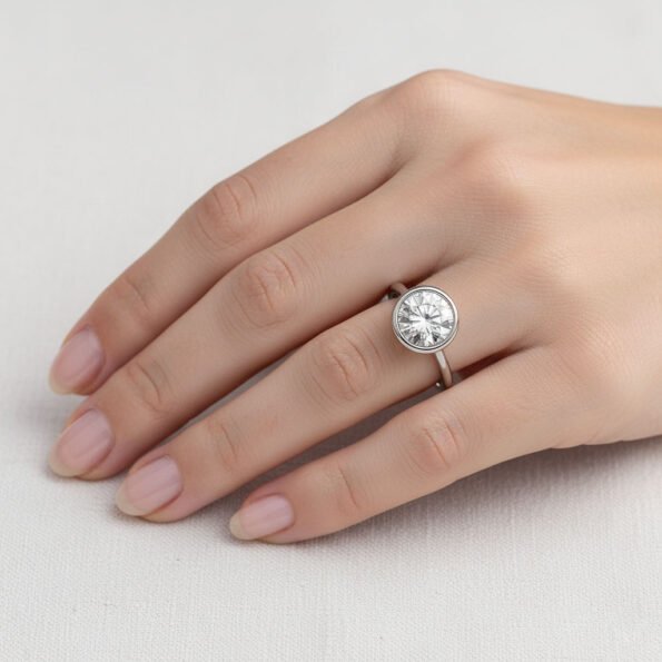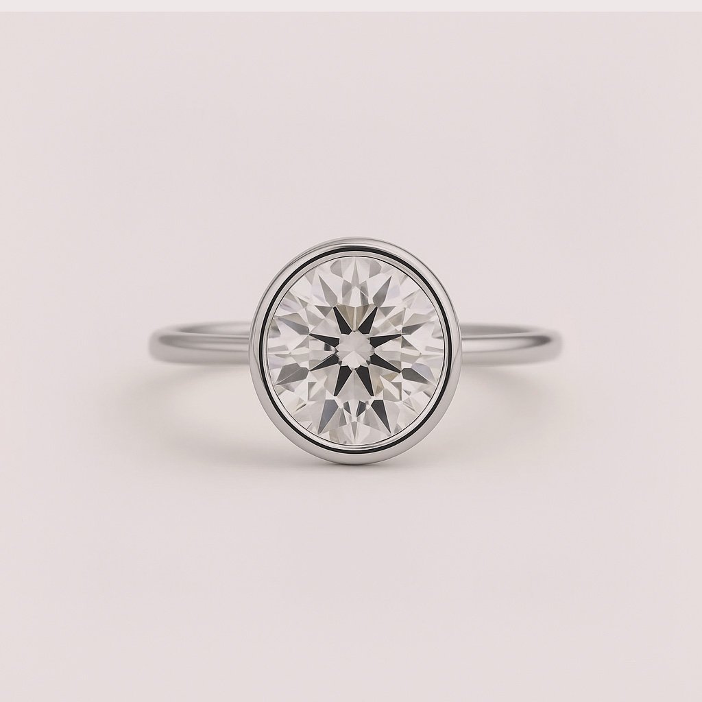 Make a statement with this breathtaking 5.20ct round cut diamond engagement ring, set in a sleek, modern bezel setting. The brilliant diamond, with its exceptional E color and flawless VS1 clarity, is IGI certified, ensuring its superior quality and authenticity.