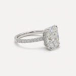 This luxurious ring combines classic solitaire elegance with pavé sparkle, making it a perfect choice for those who love bold, sophisticated engagement rings.