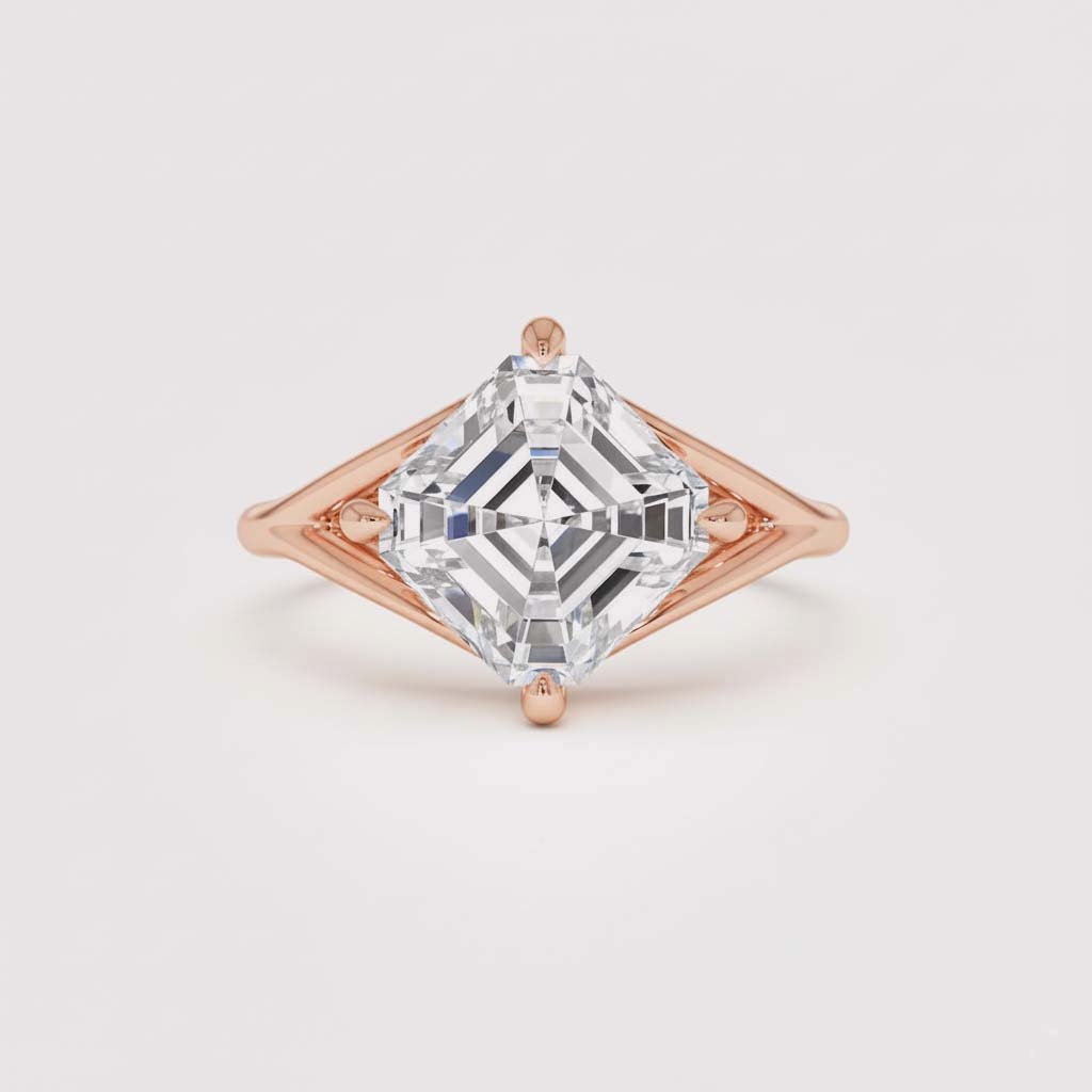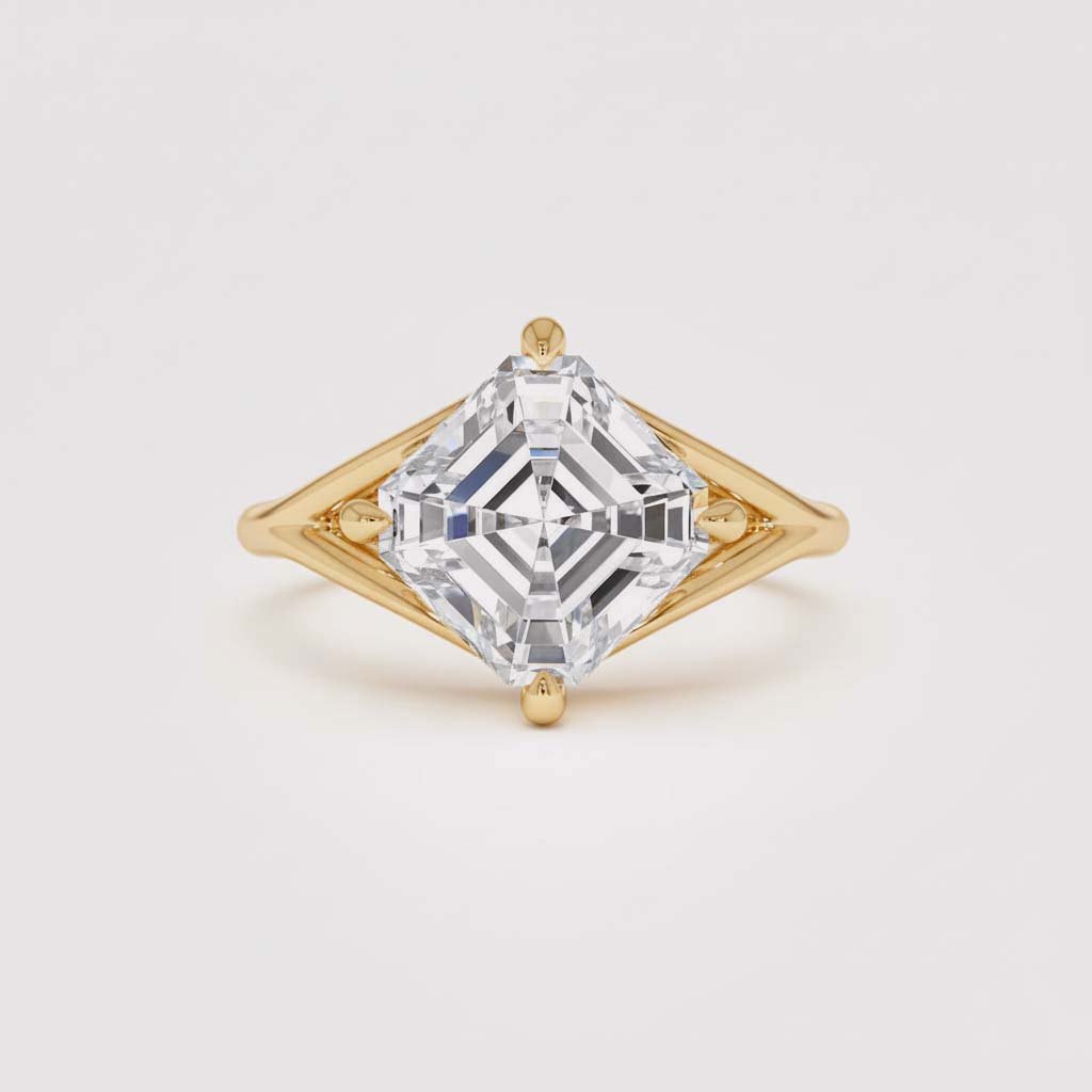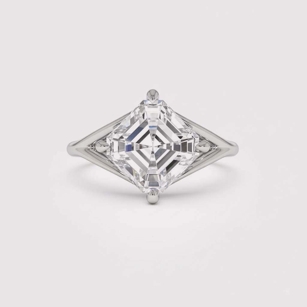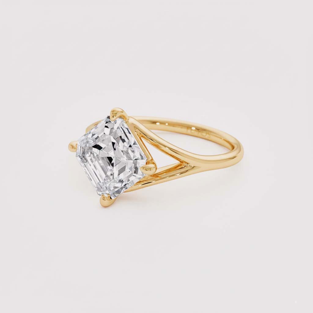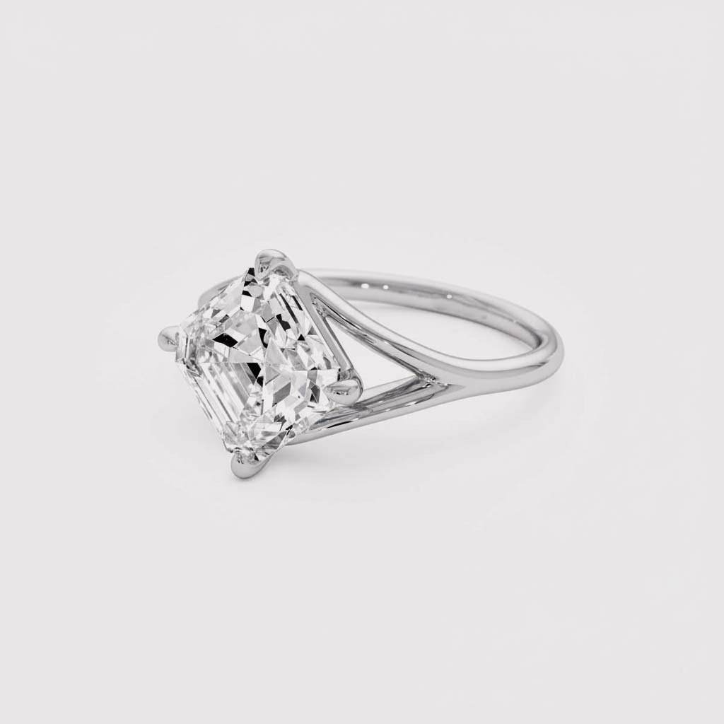5.62 ct Asscher Cut Lab Diamond Ring | Kite Set Split Shank Solitaire | Solid Gold