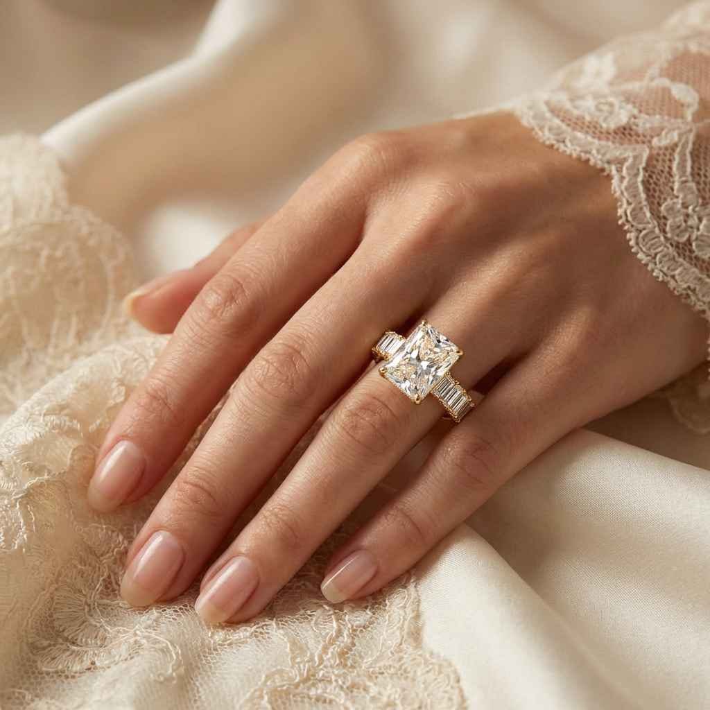 7.87 CTW Radiant Cut Lab Grown Diamond Engagement Ring, 14K Gold, IGI Certified, E-F/VS1