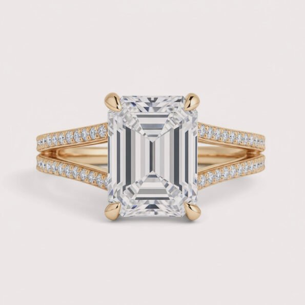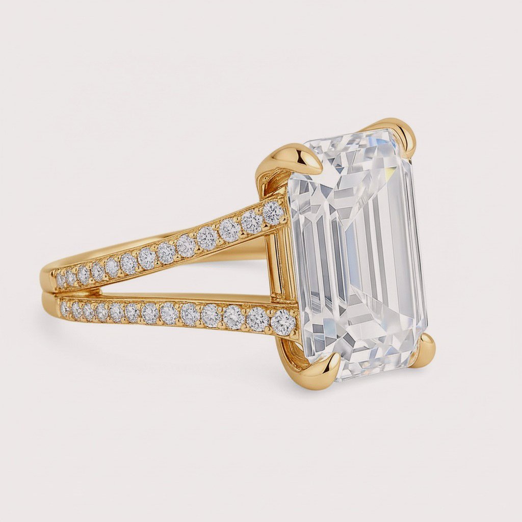Beyoncé Inspired 3ct Emerald Cut Lab Diamond Engagement Ring with Split Shank – IGI Certified Gold Ring