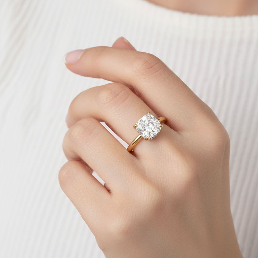 Cushion Cut 2.50 Carat F VS1 IGI Certified Lab Diamond Engagement Ring in 14K Yellow Gold – Classic Solitaire Setting