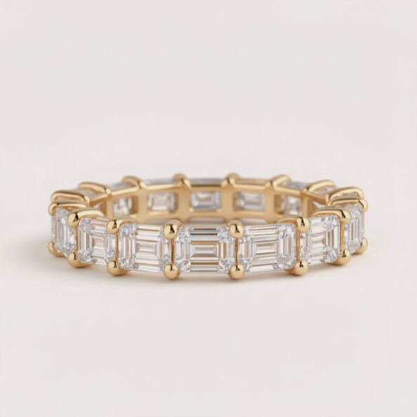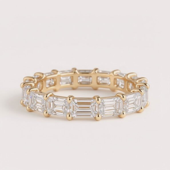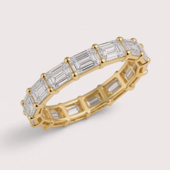 East West 4–7ctw Emerald Cut IGI Certified Lab Diamond Eternity Band in 10K Gold – Horizontal Set Luxury Ring