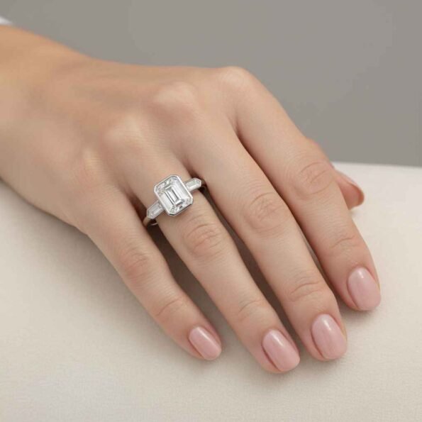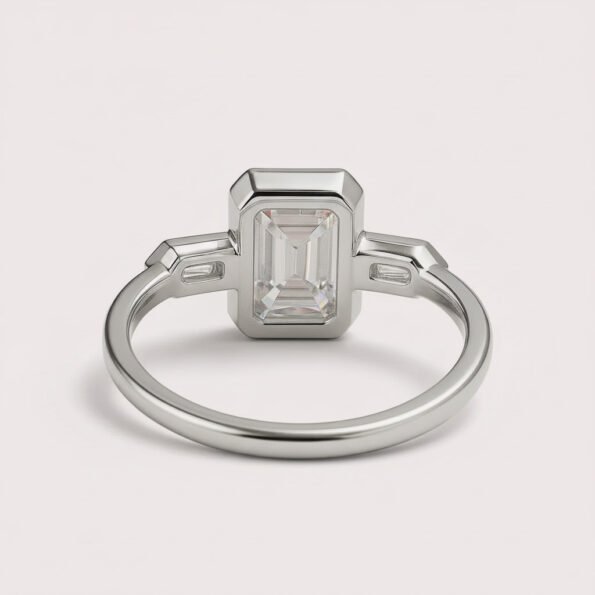 Emerald Cut 3.0ct EF VS1 IGI Certified Lab Diamond Three Stone Ring in 14K Gold – Bullet Side Accents