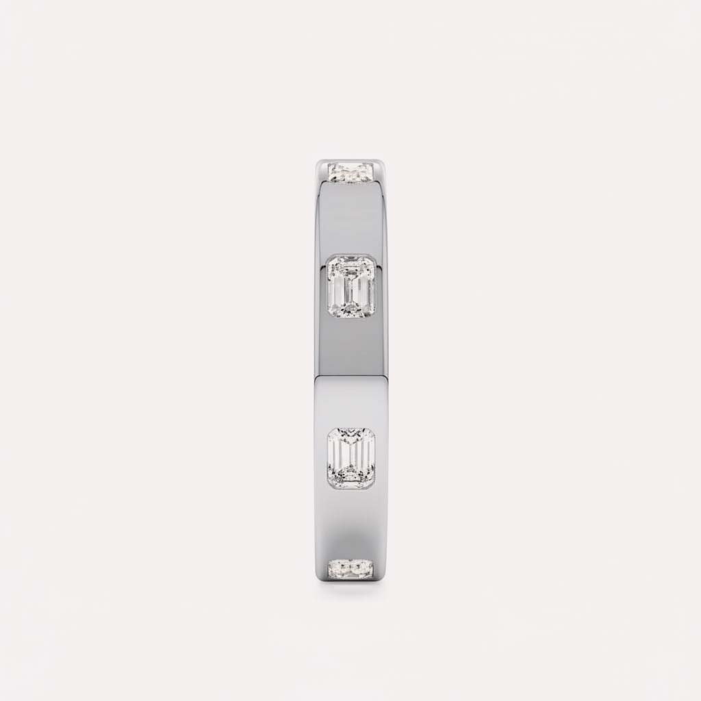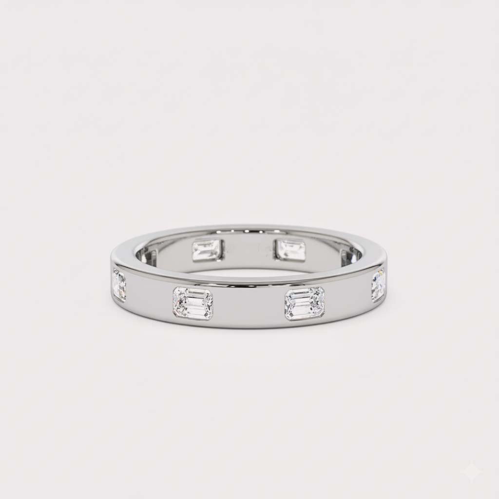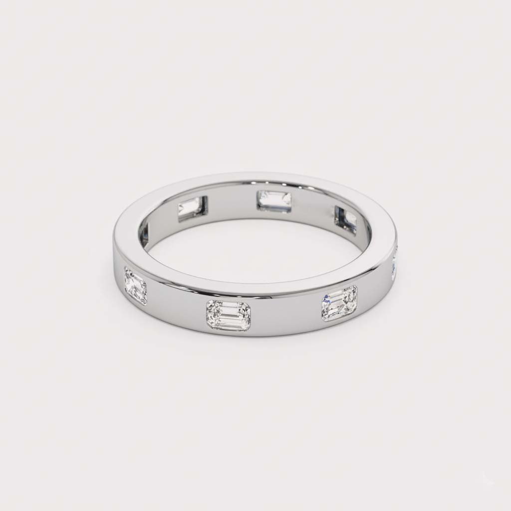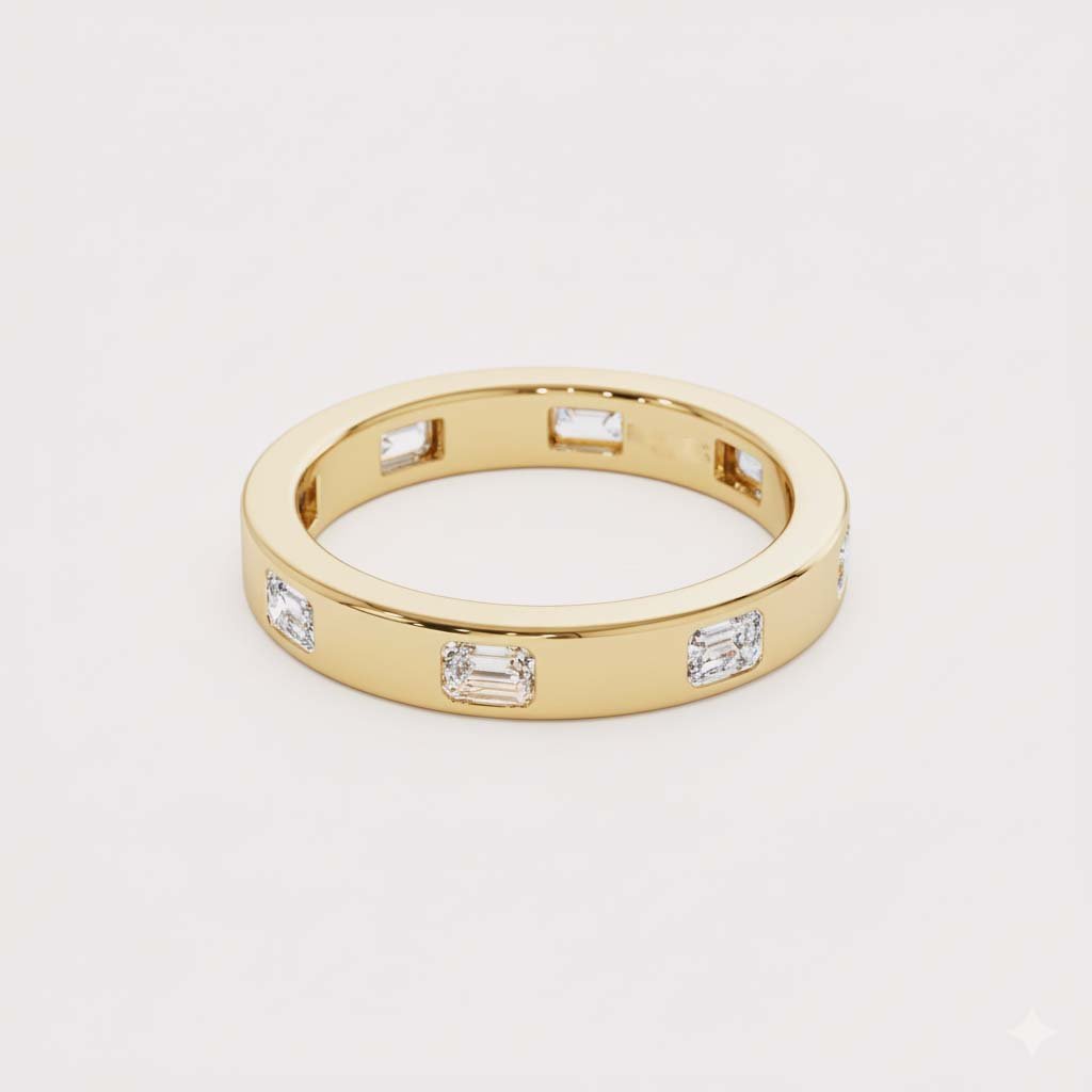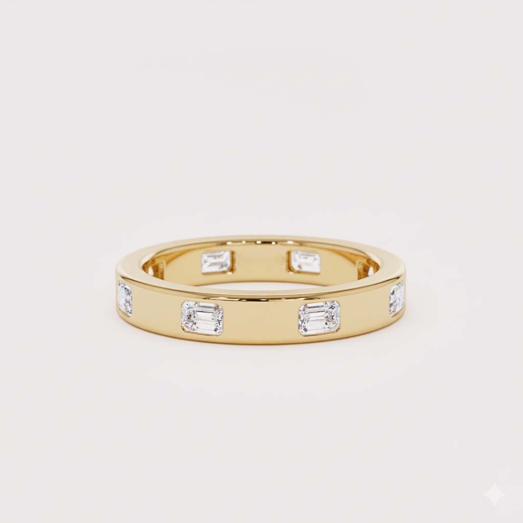 Discover the pinnacle of modern, understated luxury with our Emerald Cut Diamond Eternity Band. This ring features approximately 0.80 ctw of stunning, emerald-cut lab-grown diamonds, perfectly spaced and set flush into a high-polish flat band.