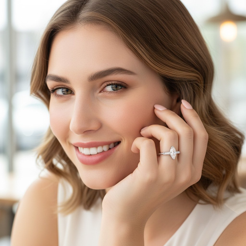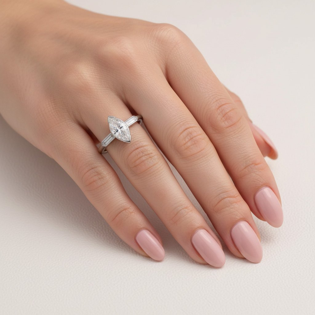 Marquise Cut 1.60ct EF VS1 IGI Certified Lab Diamond Three Stone Ring in 14K Gold ā Bullet Side Accents
