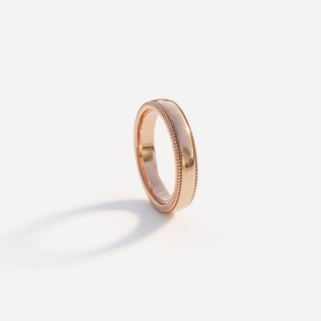 Men’s 4mm Milgrain Edge Wedding Band | Solid Gold | High Polish Flat Center