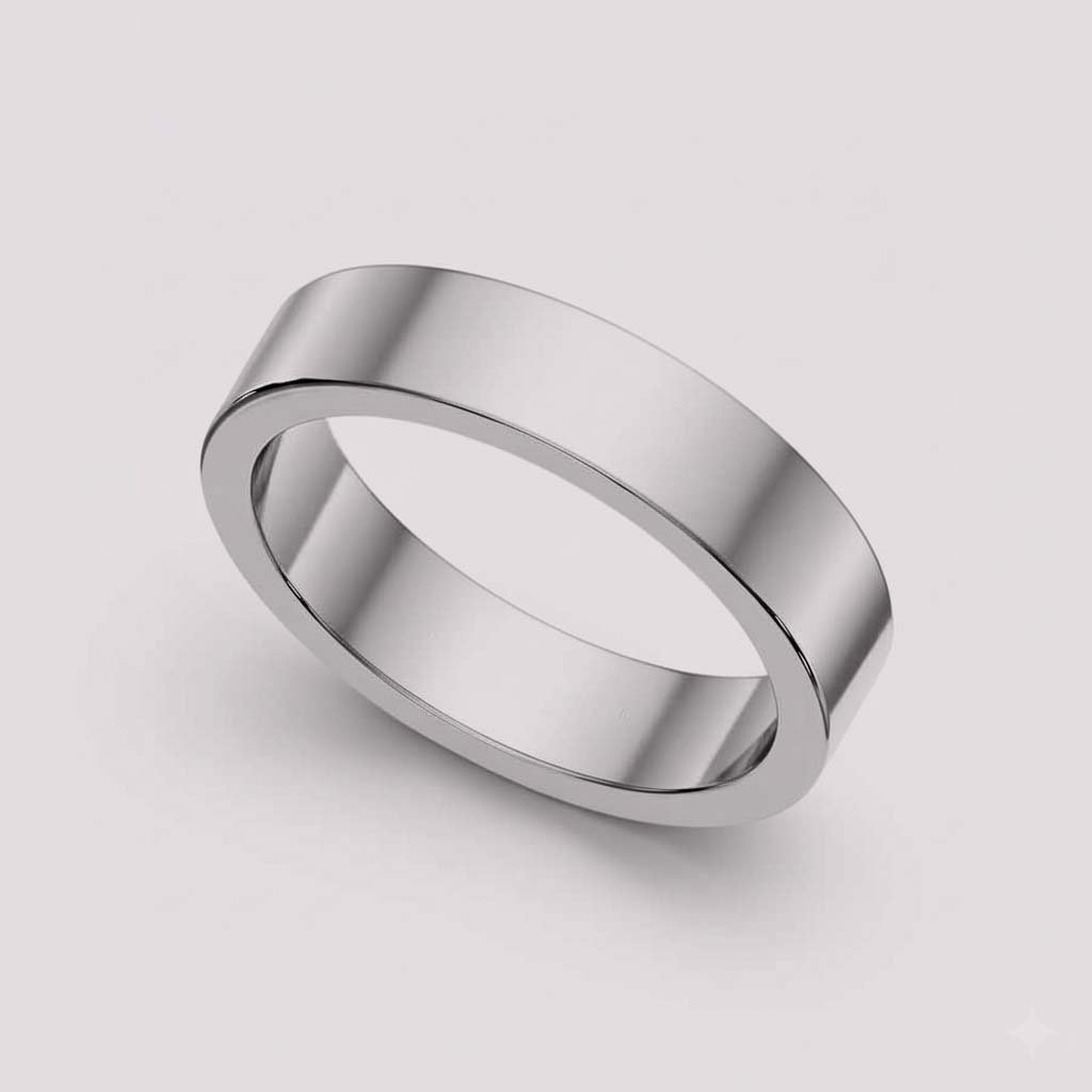 Discover timeless sophistication with our Men’s 5mm Flat Wedding Band. This classic-meets-modern ring features a perfectly flat profile and a brilliant high-polish finish that captures the light.