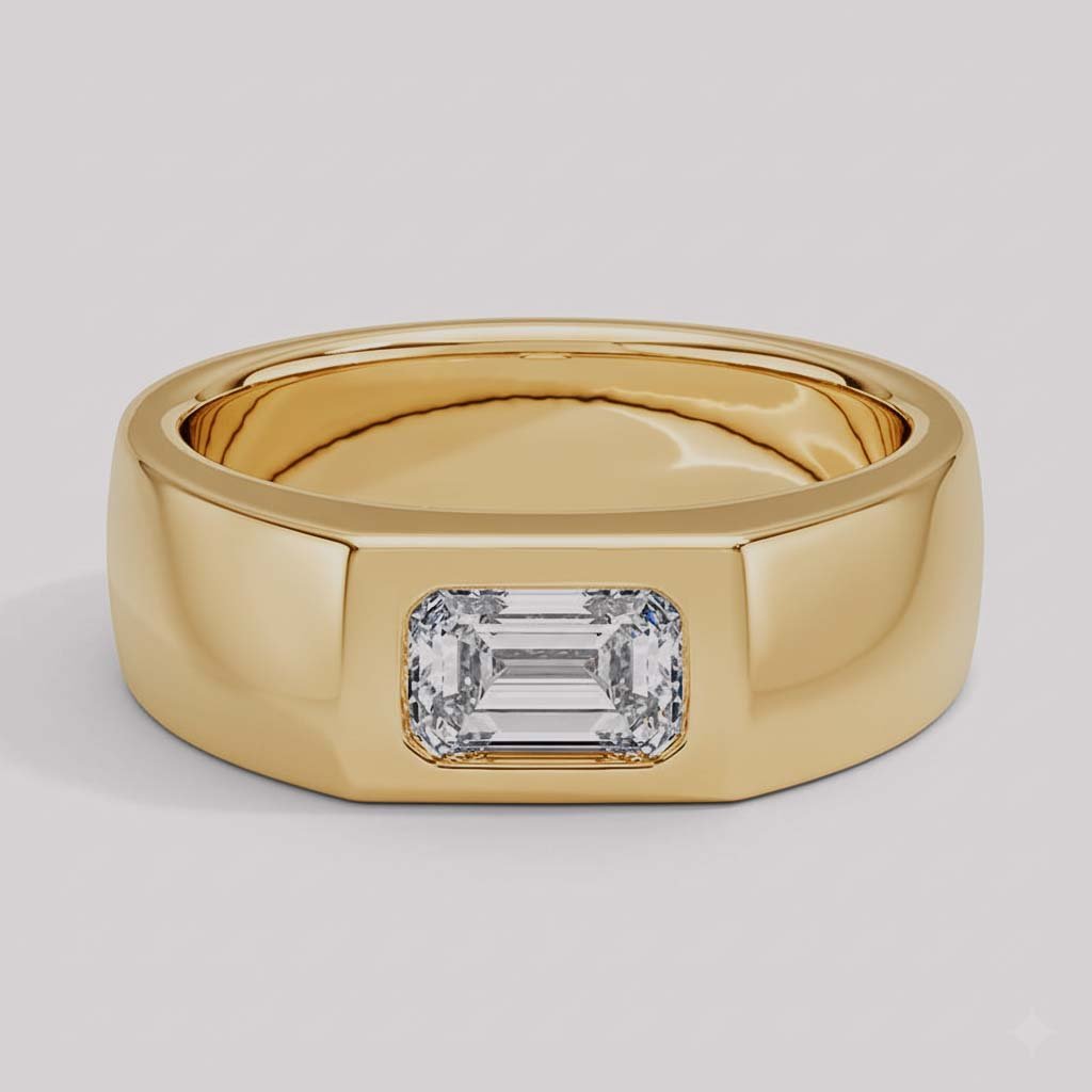 Men’s 6mm Emerald Cut Lab Diamond Cigar Ring | 0.60 ct Solitaire | Solid Gold