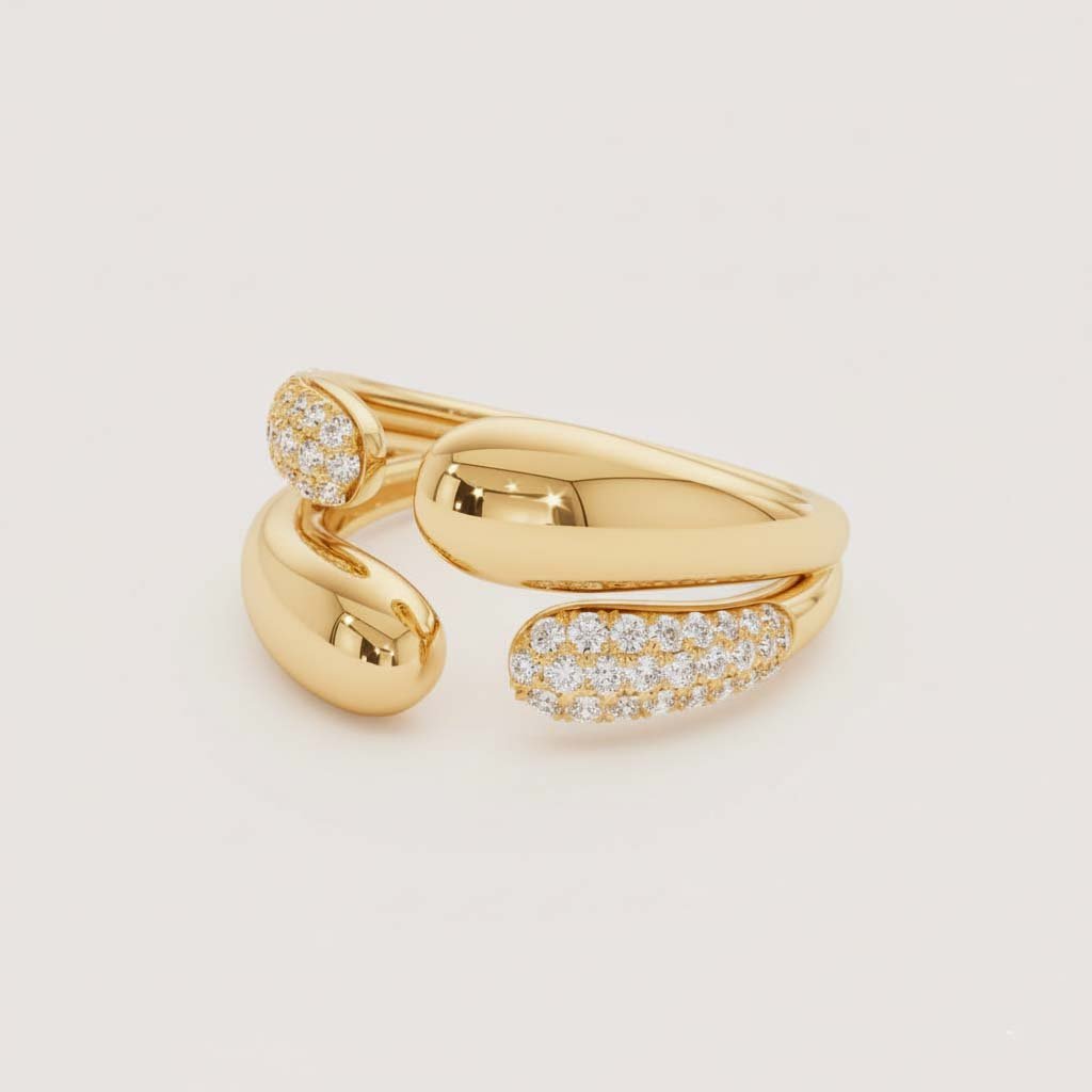 Modern Sculptural Open Statement Ring | 0.45 ctw Pavé Lab Diamond | Solid Gold