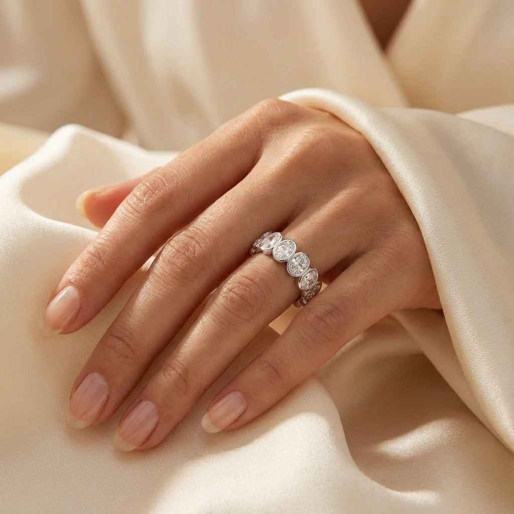 Indulge in timeless beauty with our oval cut eternity band featuring 5 to 8 carats total weight of dazzling lab-grown diamonds. Each 0.50ct CVD diamond is carefully handset in a continuous loop of brilliance that symbolizes eternal love. Crafted in luxurious 18K gold and available in US sizes 4 to 12, this eternity ring is the perfect choice for weddings, anniversaries, or elegant stacking.
