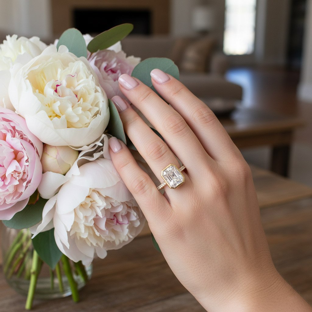 Radiant 2.5 Carat F Color VS1 IGI Certified Lab Diamond Engagement Ring in 14K Yellow Gold – Bezel Hidden Halo with Pave Setting