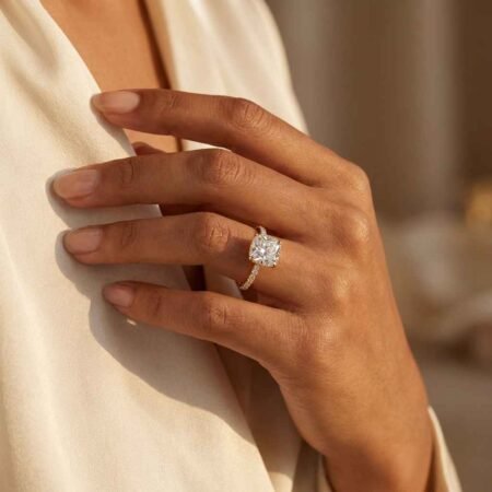 Celebrate timeless elegance with this 2.0 carat round cut CVD lab-grown diamond ring, featuring an IGI-certified F color and VS1 clarity. Handset in 14K rose gold, the hidden halo adds a luxurious sparkle to the classic solitaire style. A modern heirloom crafted for proposals, anniversaries, or meaningful celebrations, this ethically sourced diamond ring blends sophistication with conscious luxury. Ideal for brides who desire a high-carat look with eco-conscious values.