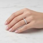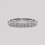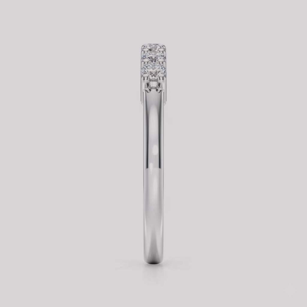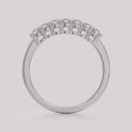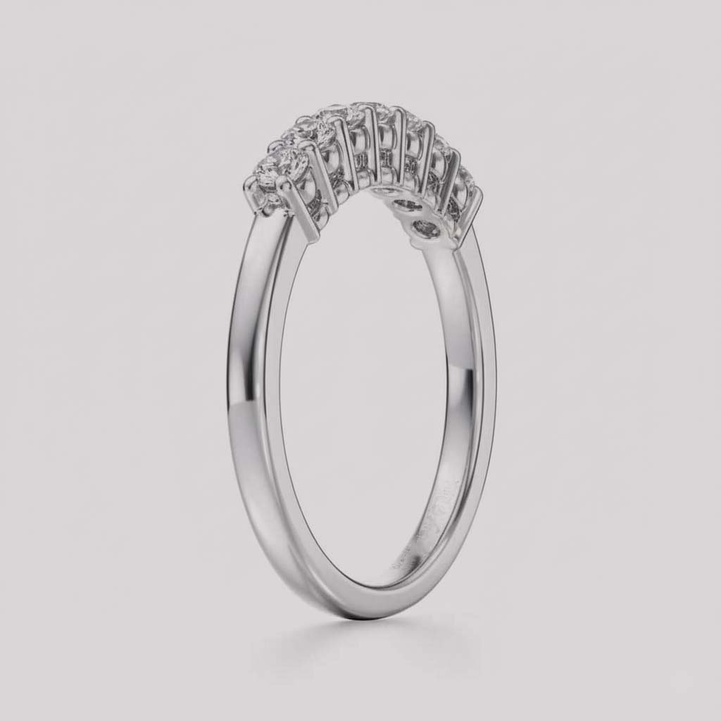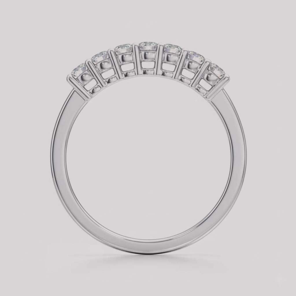 It features seven brilliant, perfectly matched round-cut lab-grown diamonds, totaling 0.35 carats. The diamonds are set in a beautiful shared U-prong (or “scalloped”) setting, which minimizes metal and allows light to enter from all sides for a display of maximum sparkle.