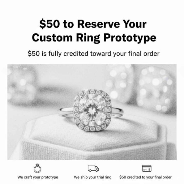 - Step 2: Book Your Trial: Pay a $50 booking fee to secure your custom prototype. We’ll get to work crafting your 925 silver and CZ ring.