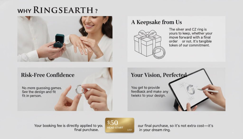 Buying an expensive ring online can be stressful. What if it doesn’t fit? What if the design isn’t exactly what you imagined? What if the quality isn’t what you expected?
