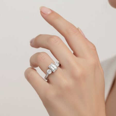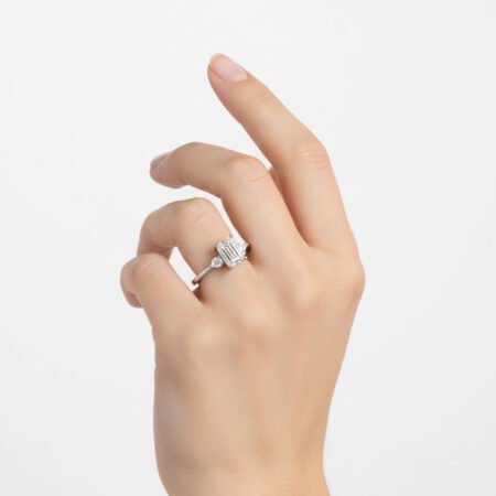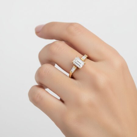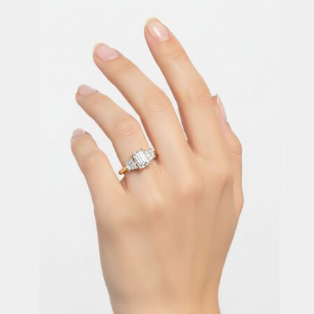 SKU: RE15971.53ct Emerald Cut Lab Grown Diamond Ring, IGI Certified, Baguette Side Stones, 1.78ctw Three Stone Setting