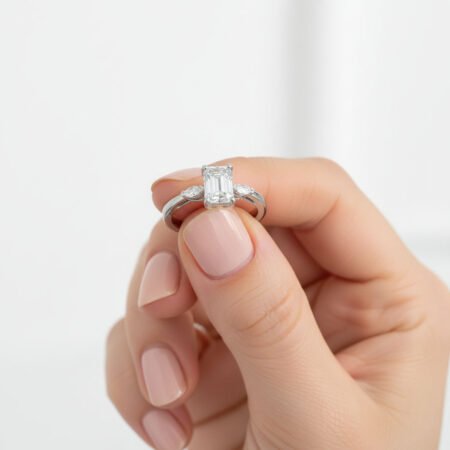 SKU: RE15961.52ct Emerald Cut Lab Grown Diamond Ring, IGI Certified, Round Side Stones