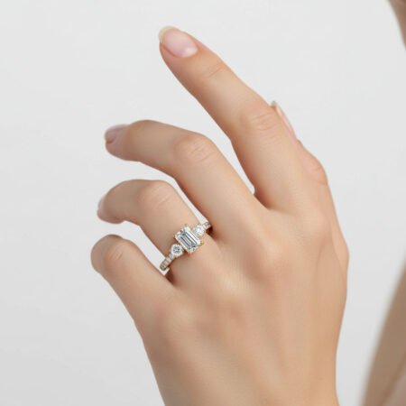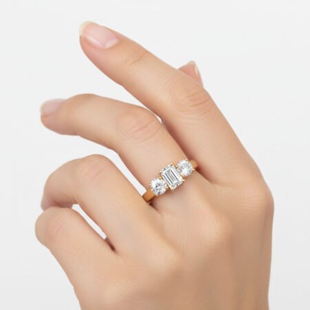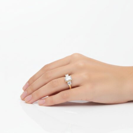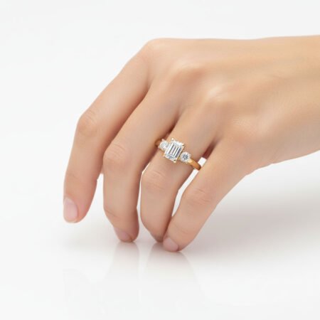 SKU: RE16012.03 ctw Emerald Cut Lab Diamond Three Stone Ring | Trapezoid Sides | IGI Certified | 14K Gold