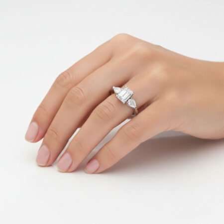 SKU: RE15941.53ct Emerald Cut Lab Grown Diamond Ring, IGI Certified, Pear Side Stones