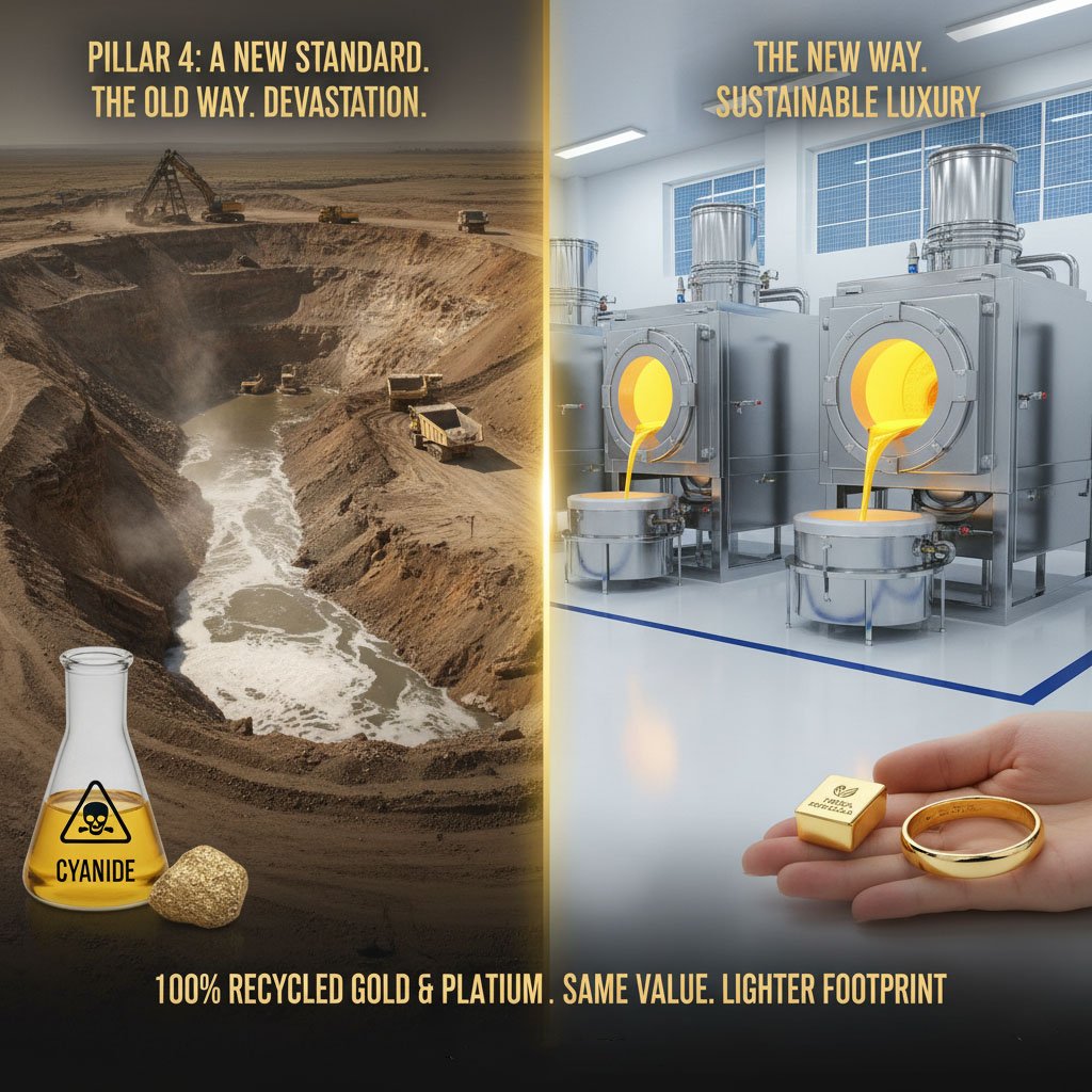 The jewelry industry’s “dirty secret” isn’t just in stones; it’s in metals. Traditional gold mining is one of the most destructive processes on earth, using toxic substances like mercury and cyanide that poison local water supplies and scar landscapes.